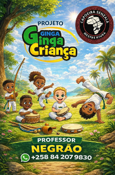 Professor Negrao está realizando um trabalho importante com o projeto Ginga, Ginga Criança, em Beira. Para colaborar, pesquise os objetivos do projeto liga ele +258 84 207 9830